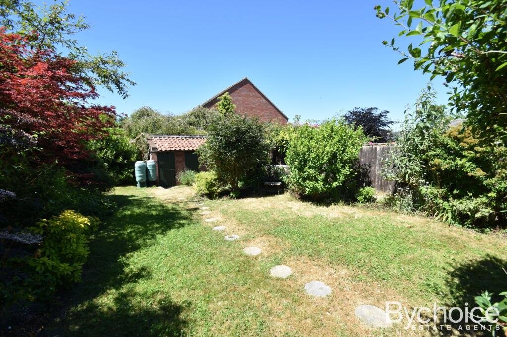 The rear of the property commences a mature garden, predominately laid to lawn. Enclosed by part wood panel fencing and part hedging, outbuildings, gate at end of garden for right of way access