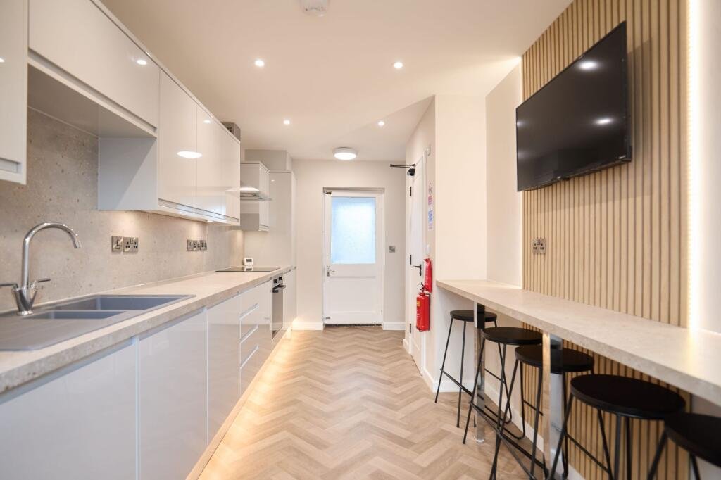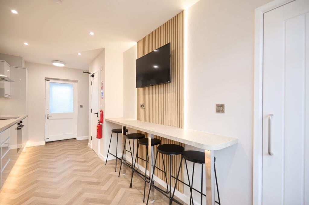 Inside, the home feels clean and organised throughout. All five bedrooms are double rooms, each with a straightforward layout that is easy to make your own. The TVs in each room add convenience for students who want personal downtime after lectures or study sessions. Storage is practical and the overall feel supports both independent living and shared routines.