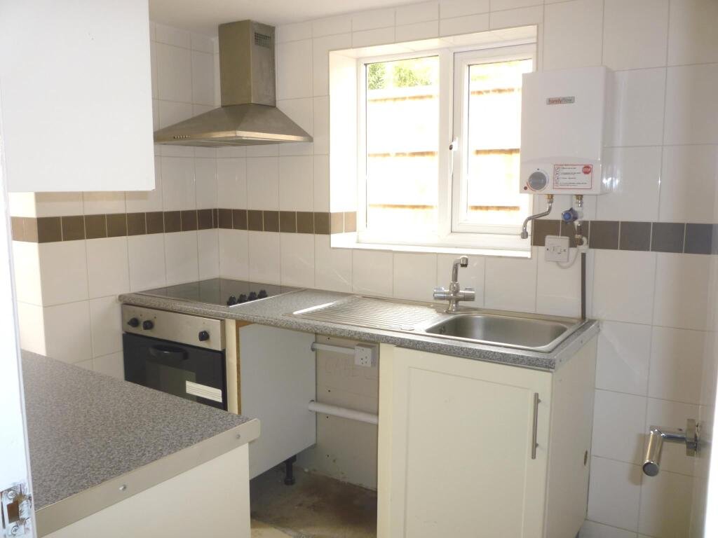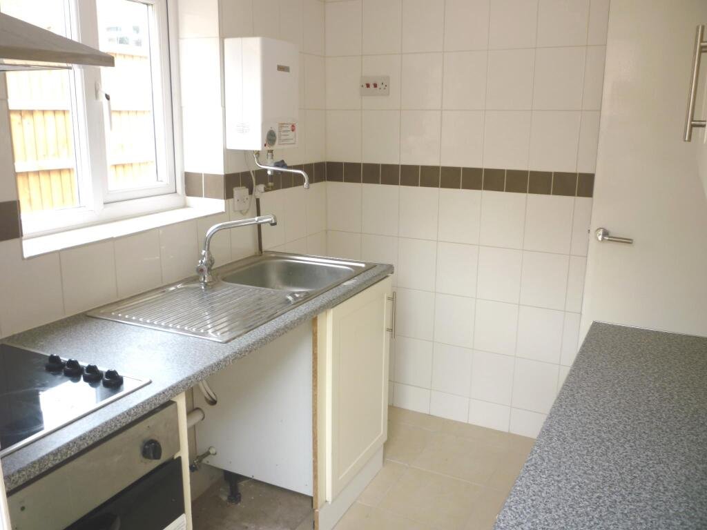 Kitchenmatching base fitted and eye level units, tiled walls and flooring, integral electric oven and hob with extractor above, space for washing machine and fridge/freezer, window to the side and door out to the rear garden.