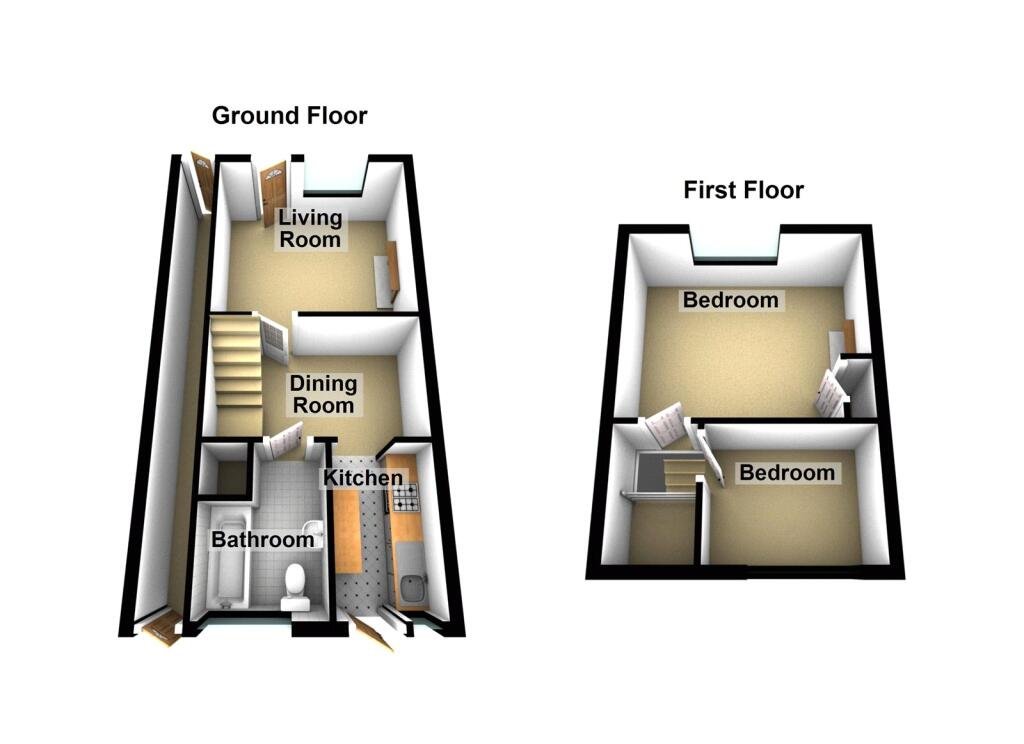 Internally the property comprises of a good sized living space with an exposed brick wall with a central fire place. Following back is the dining room with good space for a table and storage space under the stairs. The rear of the property is the gally style kitchen with electric hob and oven. Also off the dining room