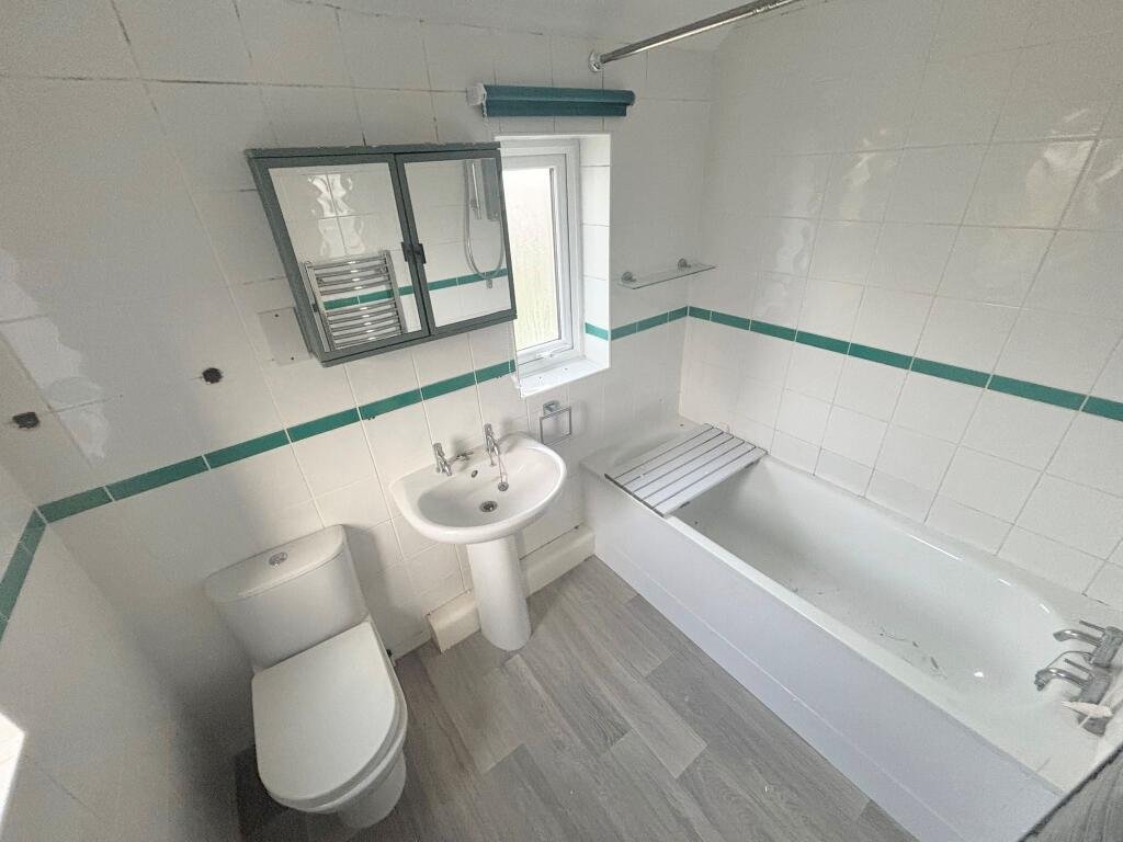 BathroomThree piece suite consisting of WC, basin and bath with shower overhead.