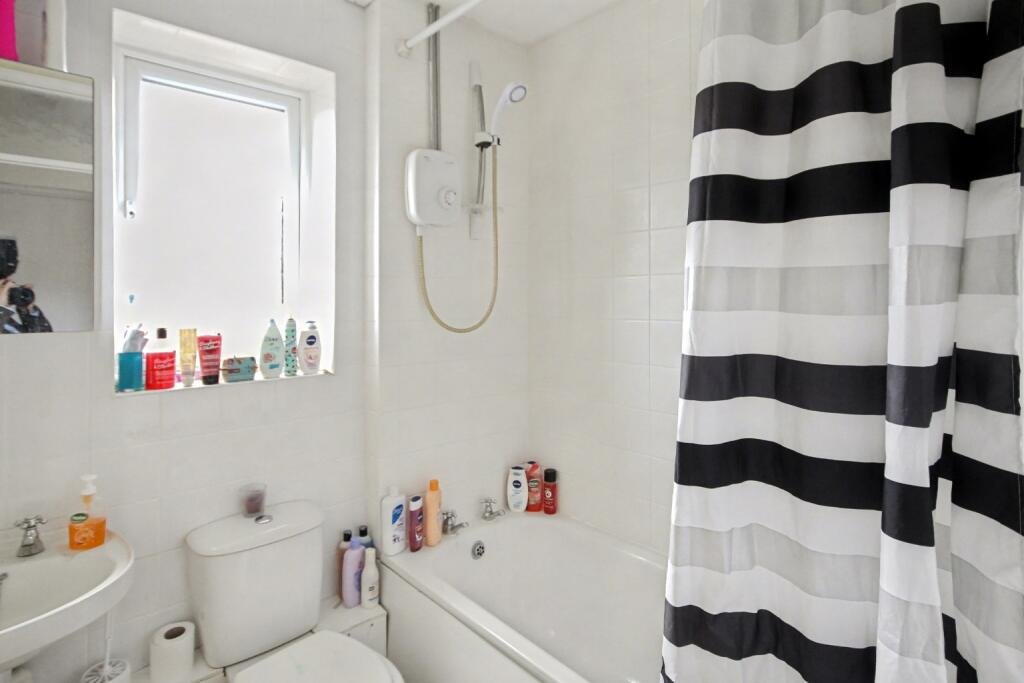 Bathroom: Fitted with a white three piece suite comprising bath, shower over with glass screen to the side, toilet and wash hand basin.