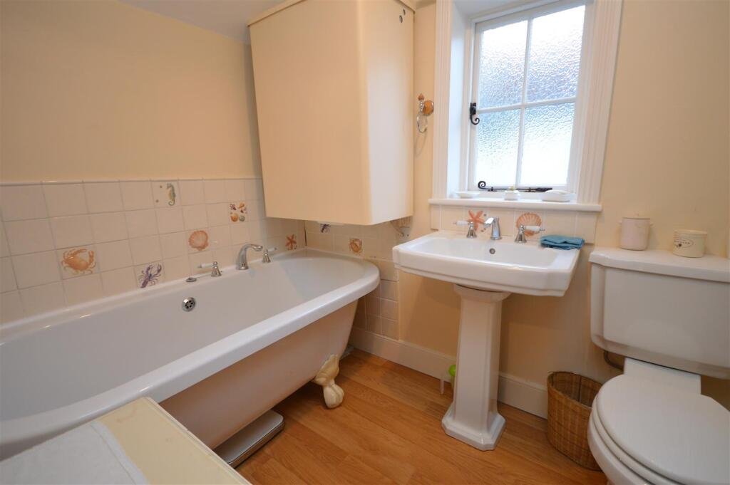 Upstairs you find the master bedroom, further single bedroom and the family bathroom with roll top bath.