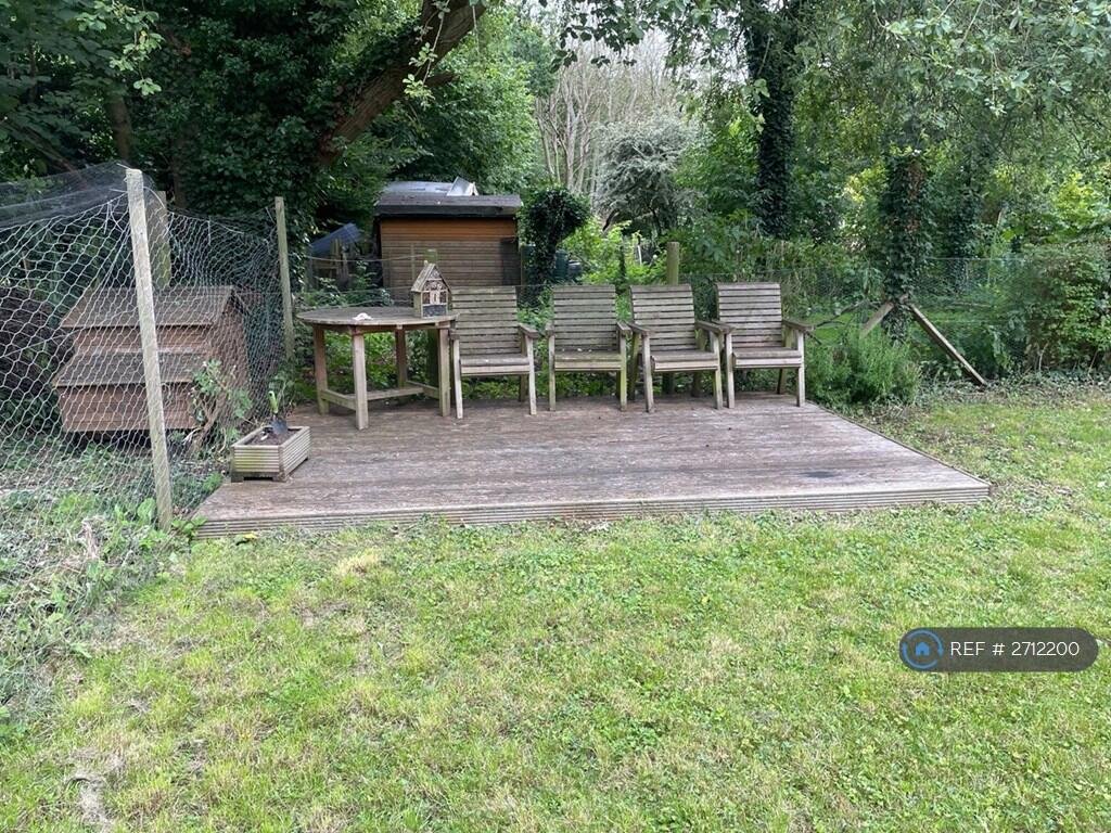 shed, decked area for seating, chicken run and vegetable beds. The parking is on the street directly outside the house and pets are considered.