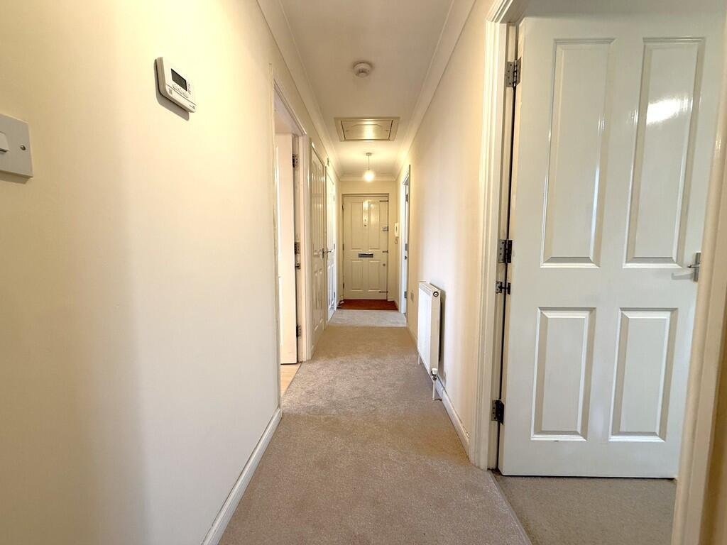 ENTRANCE HALL 19′ 9″ x 3′ 5″ (6.03m x 1.06m) A wide entrance hallway with fitted carpets, a gas fired radiator and built in airing cupboard.Â