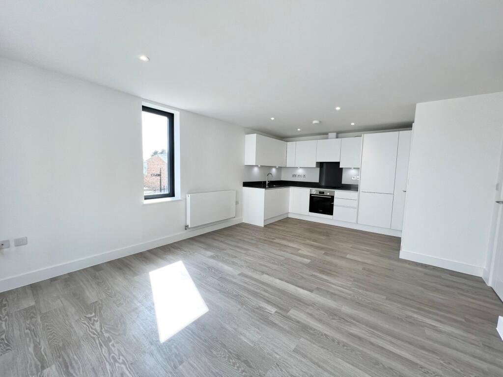 completed to a very high spec throughout. The door to the apartment opens up in to a large hallway that provides access to all of the major rooms including an impressive open plan living room and kitchen that features integrated fridge freezer, washing machine and dishwasher, stylish bathroom with shower over the bath and two bedrooms, both of which are doubles and bedroom two making for an ideal home office.