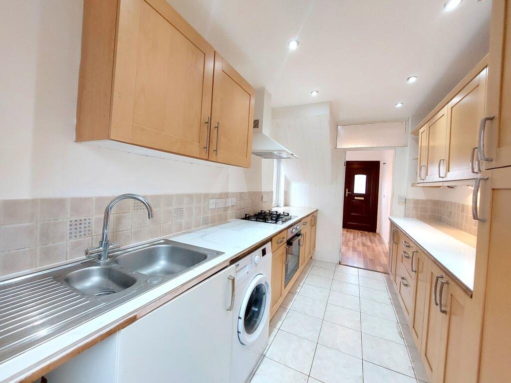 Accommodation on the ground floor includes entrance hall with stairs rising into the first floor. A kitchen to the rear has a range of eye and base level units with white goods including washing machine fridge/freezer, oven and gas hob.