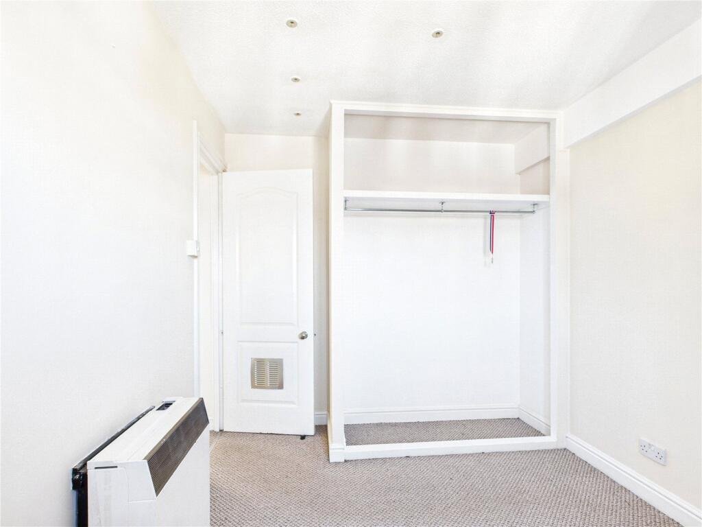 The bedroom has a double-glazed window to the rear aspect, open wardrobe with hanging space and an electric storage heater.