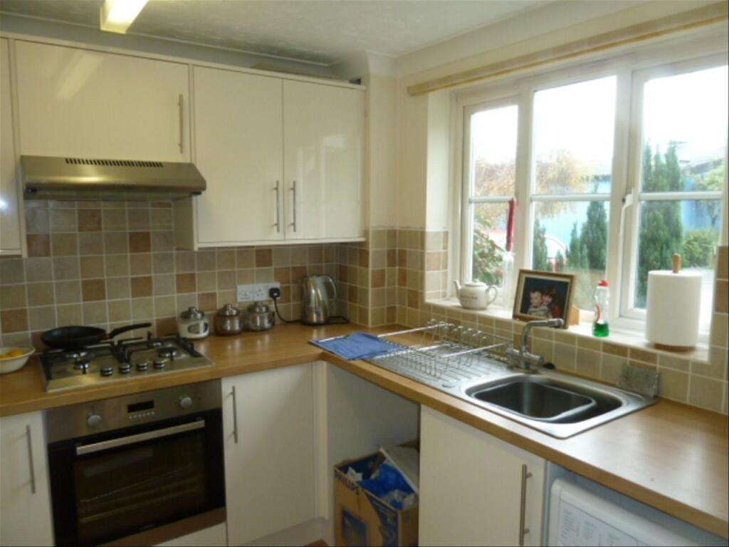 Kitchen (7’9″ x 6’2″): Cream eye-level and base units, oak finish worktops, stainless steel sink with mixer tap, built-in gas oven, hob, and extractor fan. Plumbing for washing machine and dishwasher, plus space for a fridge.