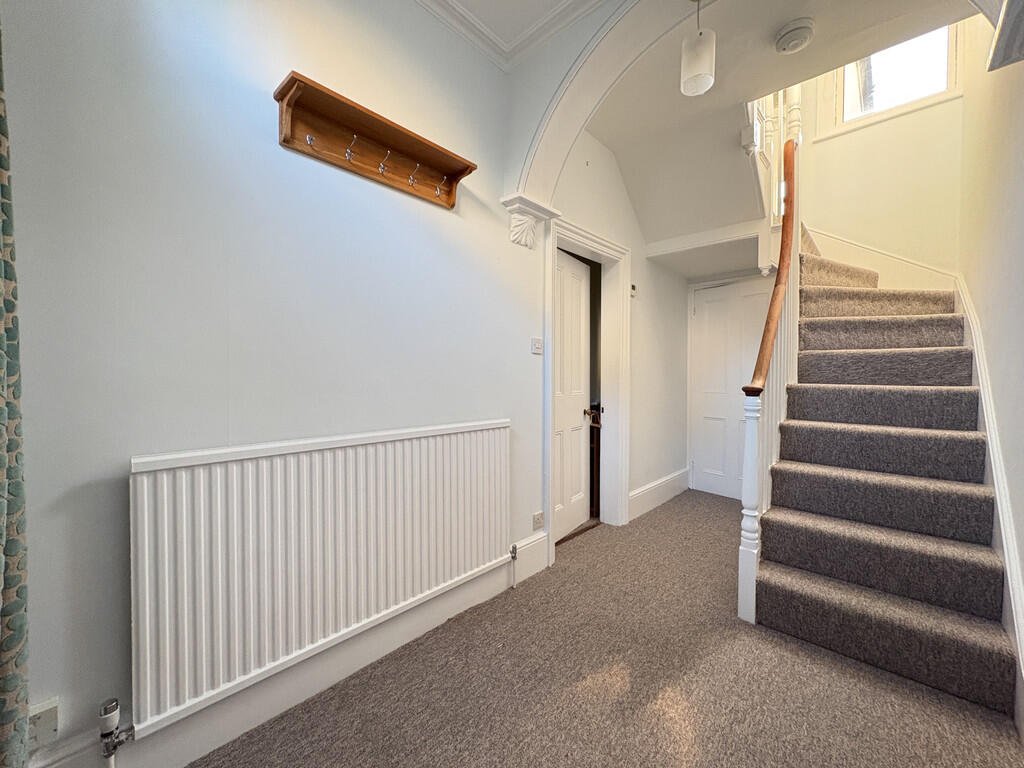 ENTRANCE HALLWAY With carpet, radiator, and under-stairs cupboard. Â