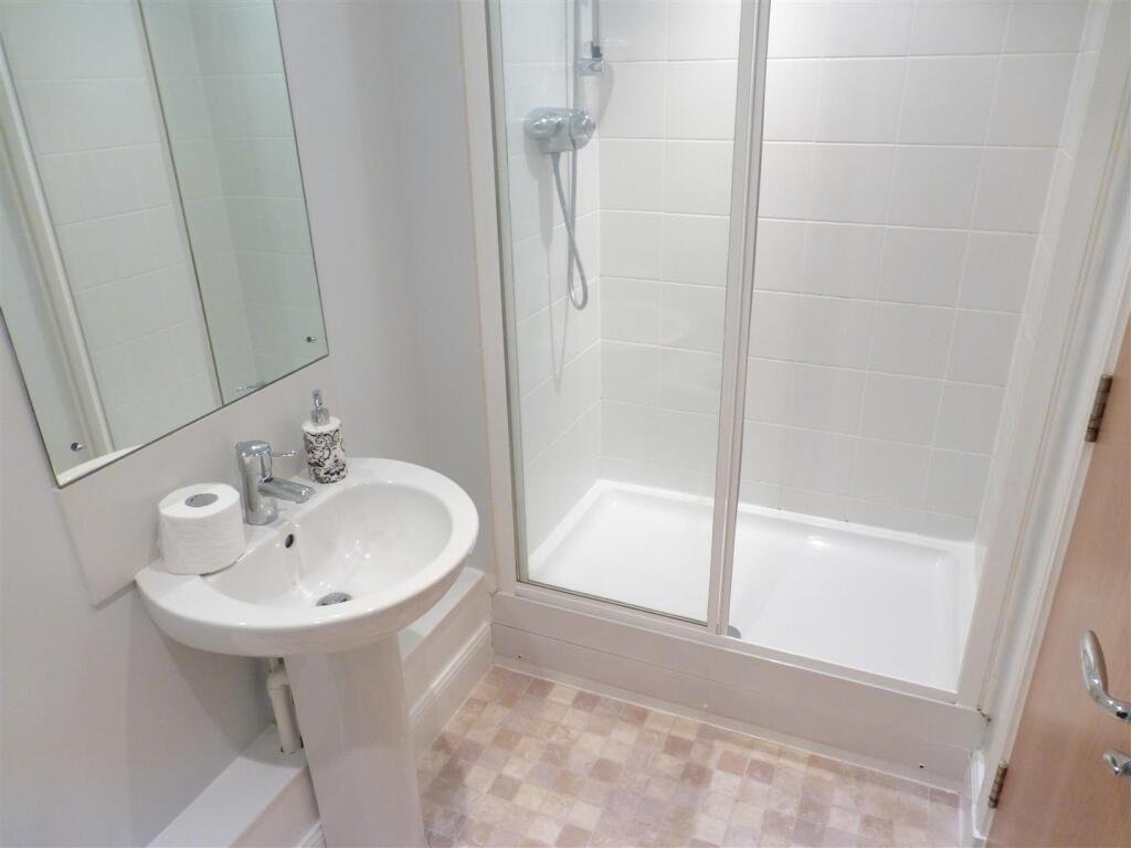 En-SuiteWC, basin and double shower cubicle, extractor fan, heated towel rail, shaving point, downlights, vinyl floor