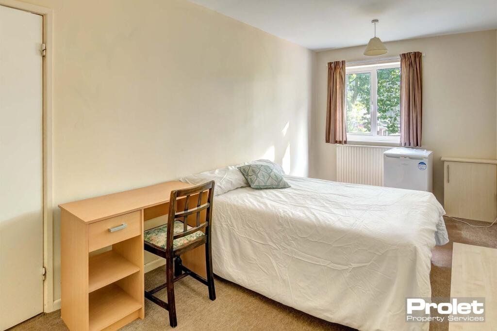 with large shower cubicle, fully fitted kitchen, and a large living space. The modern kitchen is fully fitted with oven/hob, fridge freezer, washing machine and dishwasher. It is fully furnished with beds, desks, chairs, wardrobes, a sofa, chest of drawers. All rooms are bright and benefit from natural light through large windows. The property also benefits from off road parking and a small bike shed.