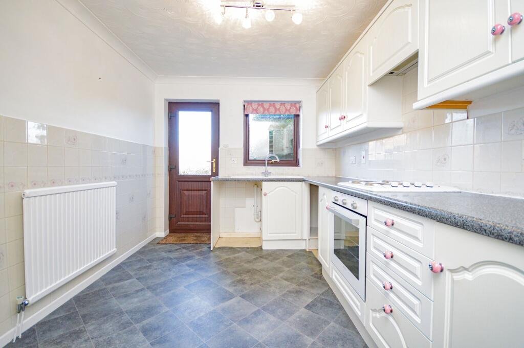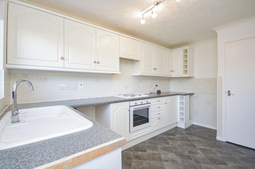 The fitted kitchen offers an abundance of cupboard and worktop space, making it ideal for those who enjoy cooking. It is equipped with an integrated electric oven and hob, with allocated space for a fridge freezer, dishwasher and washing machine.