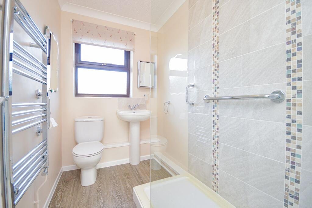 desired furnishings. The second bedroom is a comfortable single room that could alternatively be used as a home office or study, ideal for those working remotely. Completing the accommodation, the modern bathroom features a walk-in shower, wash basin, WC and a heated towel rail.