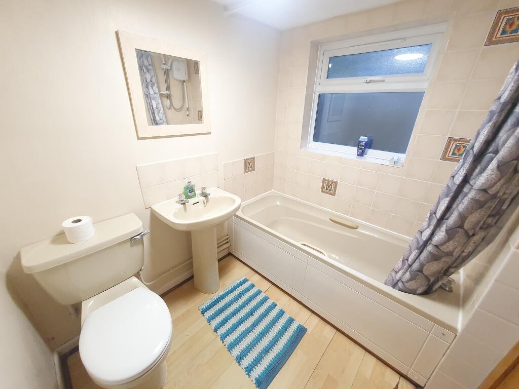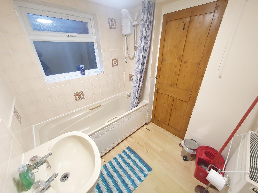 Bathroom Bath with shower over, WC, wash hand basin, window to side aspect.