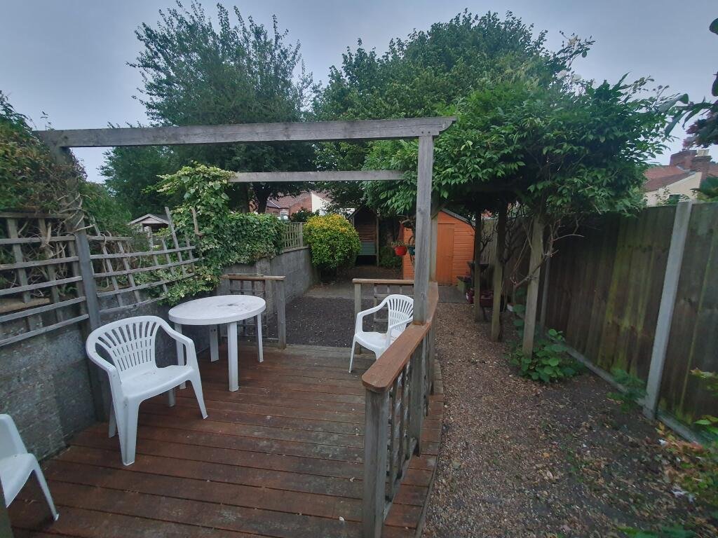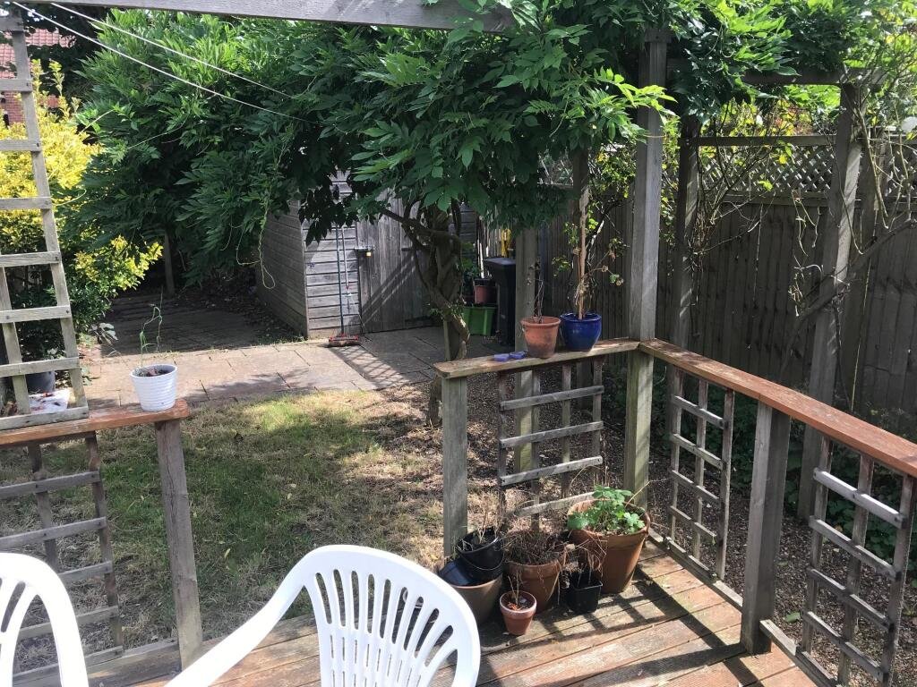 Outside Stunning bisected rear garden, with lockable shed (suitable for bike storage) and decked & paved area *which is maintained by the landlord*