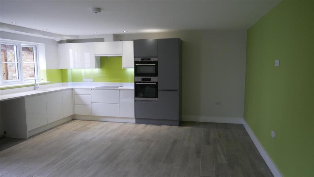 Open plan kitchen & living area Range of fitted units with built-in fridge/freezer, hob, oven and extractor hood