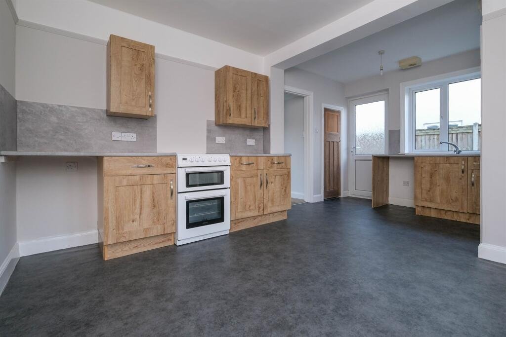 Kitchen / Dining AreaFitted with wall and base units, stainless steel sink and drainer, space for washing machine and freestanding fridge-freezer, electric cooker. Double glazed windows to side and rear aspects, and double