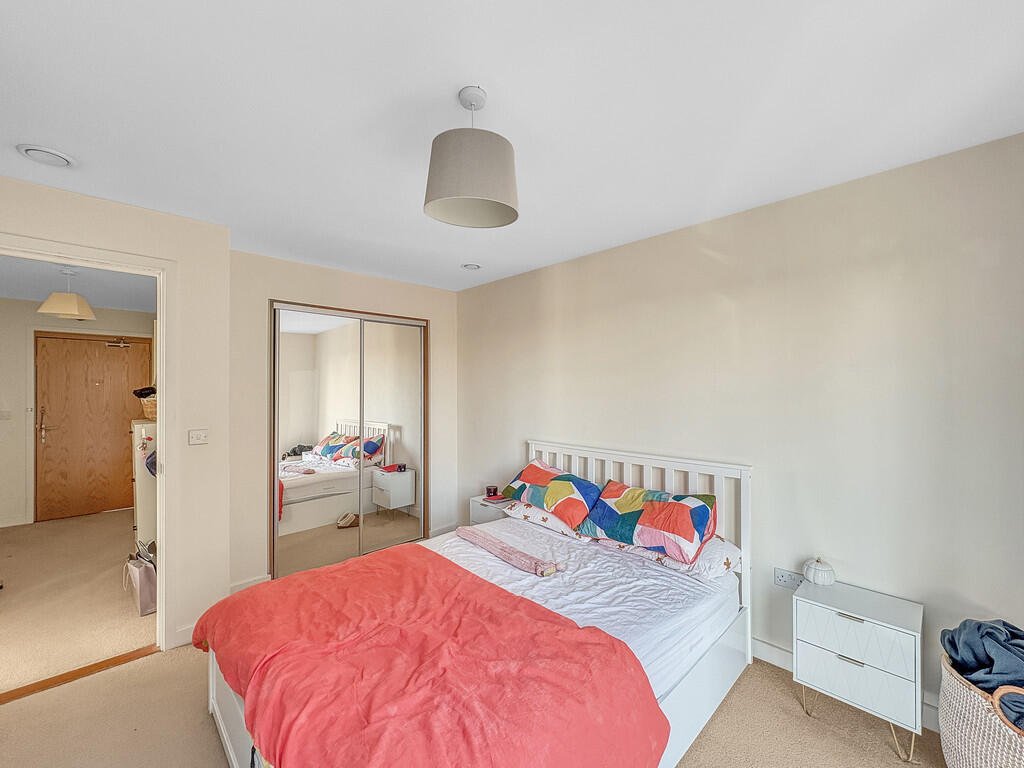 The double bedroom is well-proportioned, featuring large windows and fitted mirrored wardrobes, providing excellent storage while keeping the room light and airy.