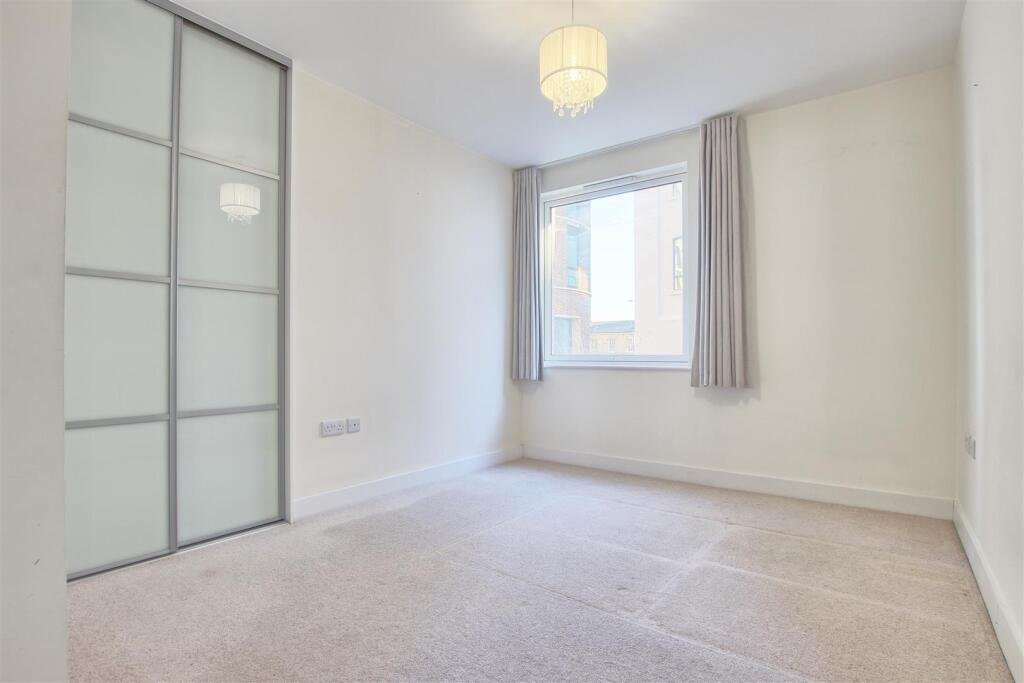 Upon entering the apartment, you are welcomed into a light hallway, with the bedroom positioned directly opposite. This generous double room is carpeted, freshly decorated in neutral tones, and benefits from a built-in double wardrobe with frosted sliding doors, maximising storage while maintaining a sleek, modern feel.