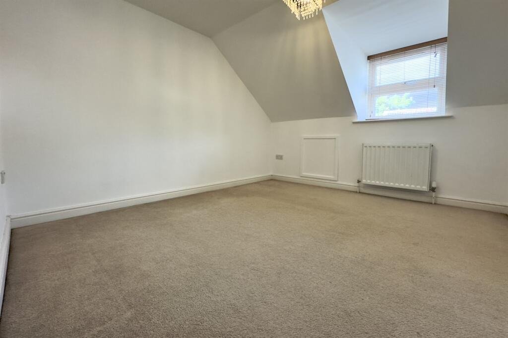 Master BedroomSpacious main bedroom with Velux window, ceiling spotlights, radiator with TRV, TV point, wall sockets and beige carpet.