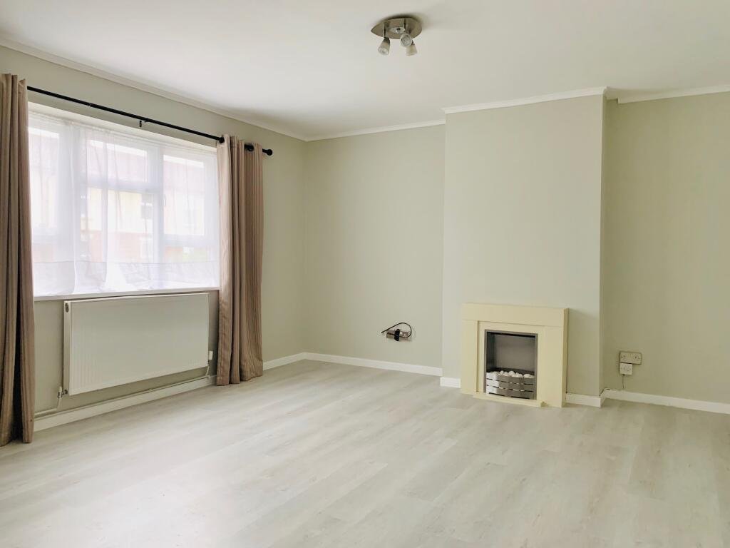 Entrance into the sitting room. A generous size room with a fireplace giving a cosy feel. Laminate flooring and grey colour scheme give a contemporary feel.