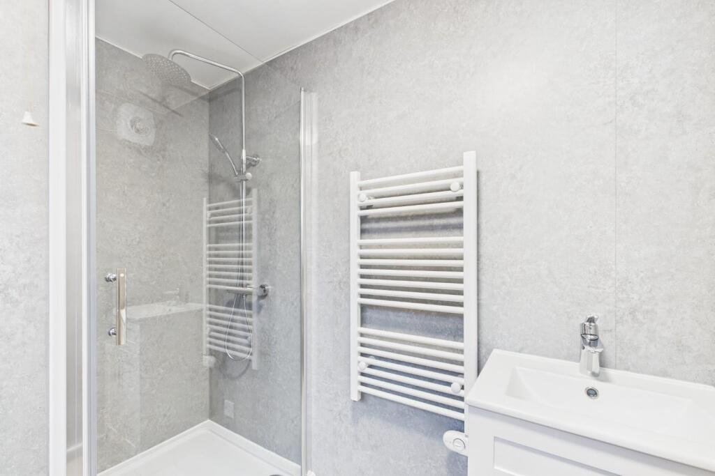 First Floor Landing – 0.85m x 0.85m – Access to loft space, wall mounted electric heater, doors to both bedrooms.