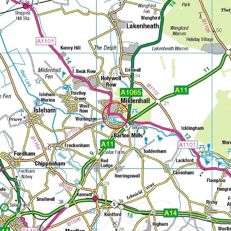 The Market town of Mildenhall is rich in its history and culture and has been an established settlement since the Stone Age. Today Mildenhall is known nationally for the nearby USAF air base and its unique Roman Silverware Collection which is known as “Mildenhall Treasure”. Centred around an historical market place offering a good range of shopping, education and leisure services together with many local places of historical interest. Approximately two miles from the A11 five ways roundabout which gives access to Thetford (12 Miles) and Norwich to the North East and Newmarket (10 miles) and London to the South and Southwest. Other towns within travelling distance are Brandon to the North West and Bury St Edmunds to the south east via the A1101.