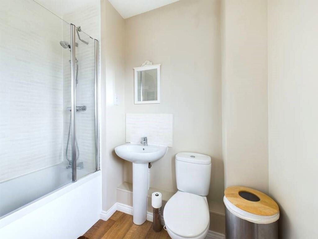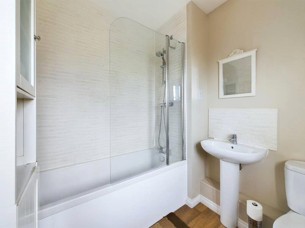 BATHROOM 6′ 9″ x 7′ 6″ (2.06m x 2.29m) Bath with overhead shower and glass screen. rear aspect windowÂ