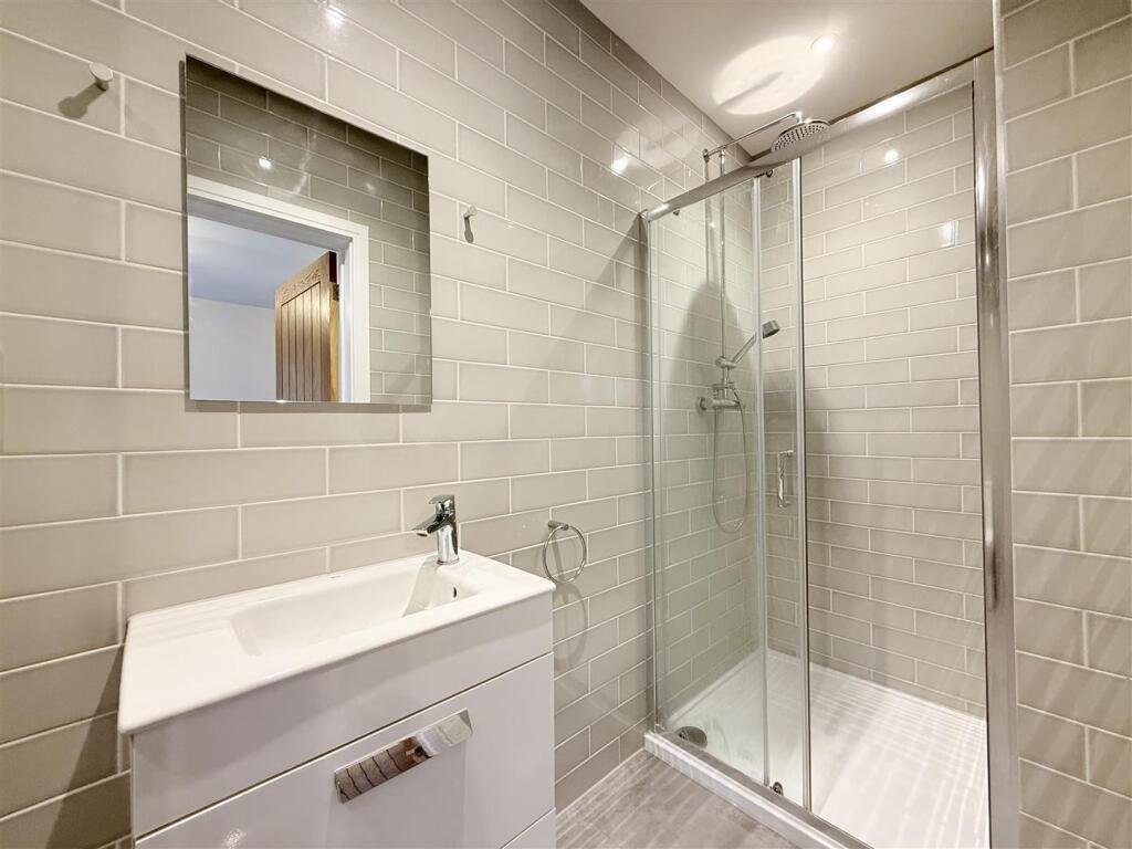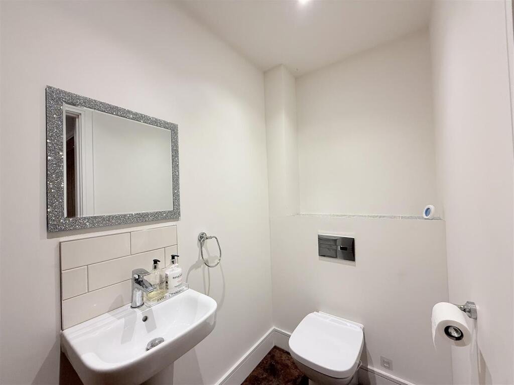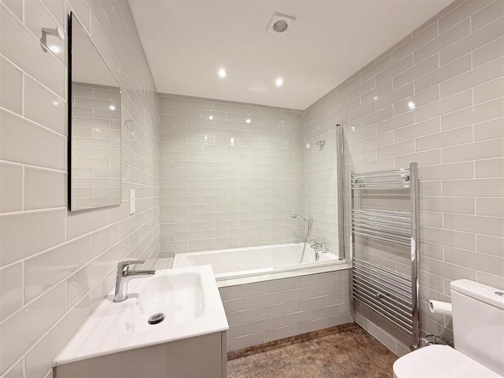 Upstairs, the property boasts three well-proportioned bedrooms, including a generous principal bedroom with built-in storage. The family bathroom is finished to a contemporary standard, featuring high-quality fittings and a calm, elegant design.