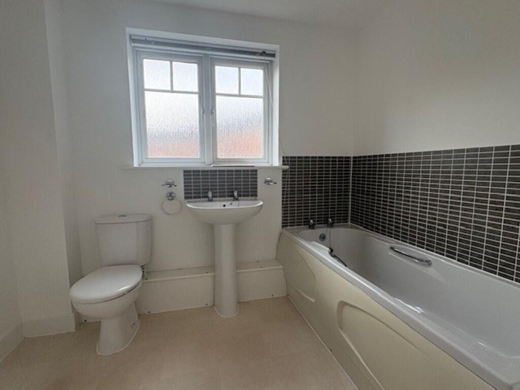 FAMILY BATHROOM With obscure double glazed window to the front aspect, suite comprising low level WC, pedestal wash hand basin, panelled bath, splash back tiling to walls, radiator, extractor fanÂ
