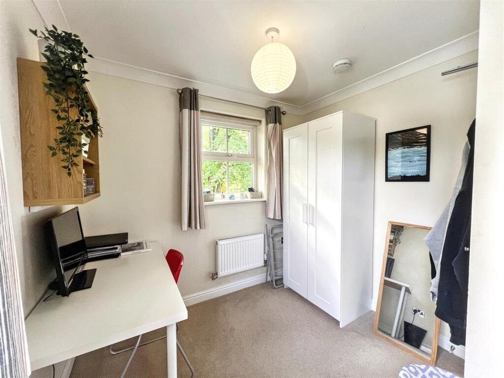 Outside, the private garden includes a picnic table, providing a great space for outdoor gatherings and barbecues. There is also a garden shed offering secure cycle storage, dedicated parking for two cars, and plenty of free on-street parking nearby for additional vehicles.