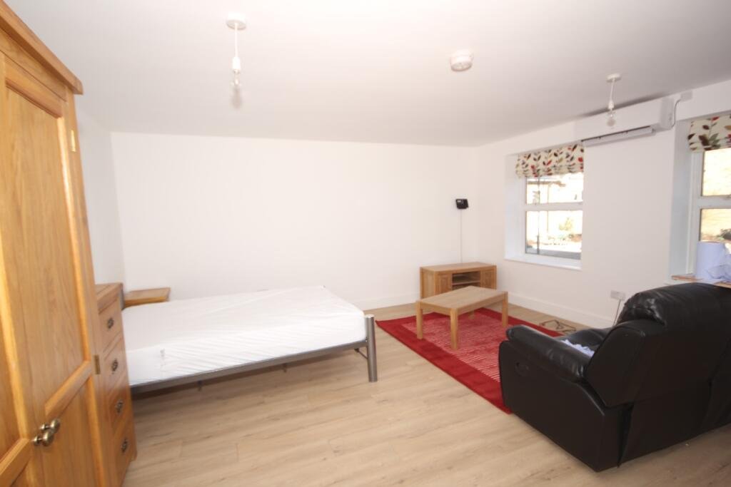 LIVING/BEDROOM: 4.6m x 4.8m – double glazed windows to the front,