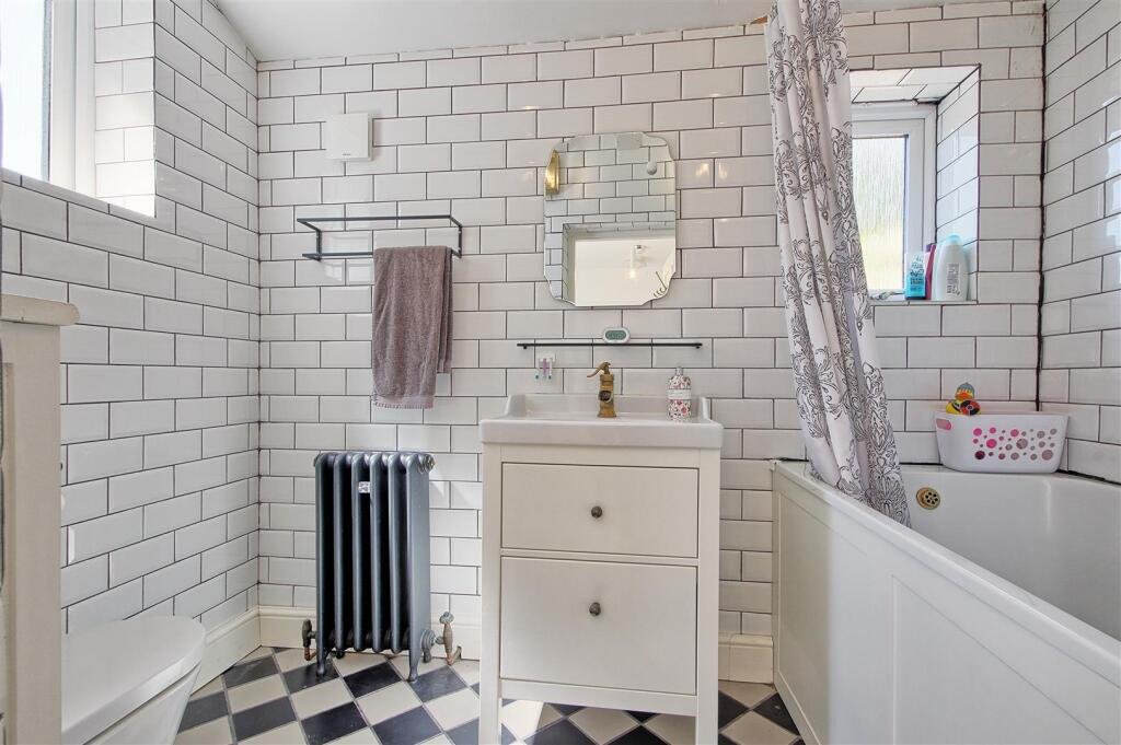 Upstairs on the first floor, there are three bedrooms. The first bedroom you come to at the top of the landing is bedroom three. Overlooking the rear of the property, this property has exposed wooden floorboards and can comfortably fit a single bed and additional furniture. Bedroom two is located next to bedroom one. This double bedroom also overlooks the rear of the property and has an original cast iron fireplace with alcoves either side of the chimney breast. The master bedroom overlooks the front of the property. This room is flooded with light thanks to the three windows and also has a feature original cast iron fireplace with tiled hearth.
