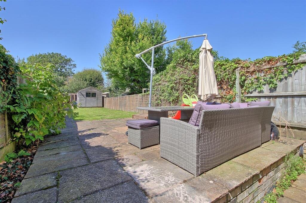 To the rear of the property, there is a private garden. Immediately next to the property, there is a paved patio area perfect to al fresco dining and entertaining and the rest of the garden is laid to lawn. At the end of the garden is a wooden shed and gate leading to the rear of the property.