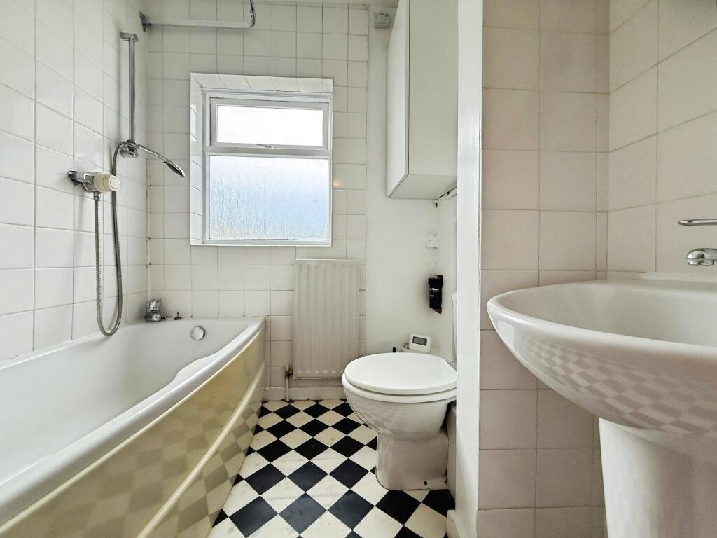 Accommodation includes two double bedrooms, with the master bedroom being notably spacious, as well as one single bedroom. The bathroom is fitted with a convenient shower over the bath.