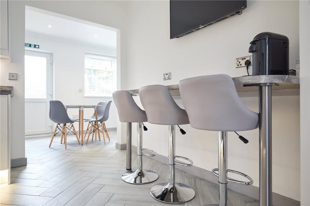 The house features five double bedrooms, each furnished to support study and relaxation. The layout is designed with students in mind, balancing personal space with well planned shared areas. A modern kitchen and sociable living area provide a welcoming environment for group meals, study sessions or