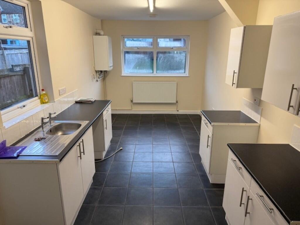 KITCHEN 18′ 0″ x 8′ 11″ (5.51m x 2.72m) High and low level units fitted with tiled flooring. Brand new decor, 2 double glazed windows and double glazed back door leading to the rear garden. Space for oven, washing machine and fridge freezer