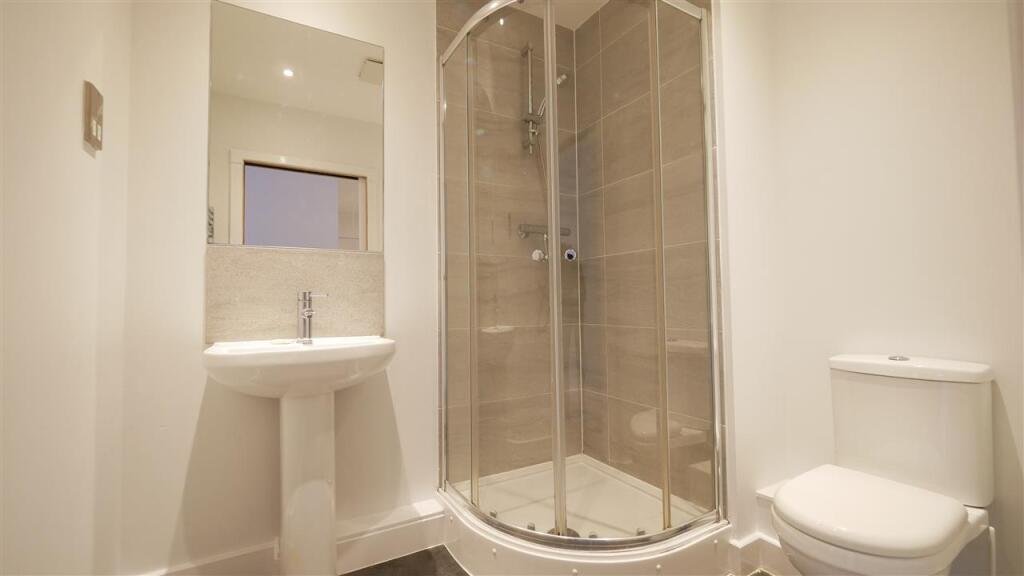 (5′ 3″) x 2.13m (7′ 0″)White suite comprising wc, basin and shower cubicle