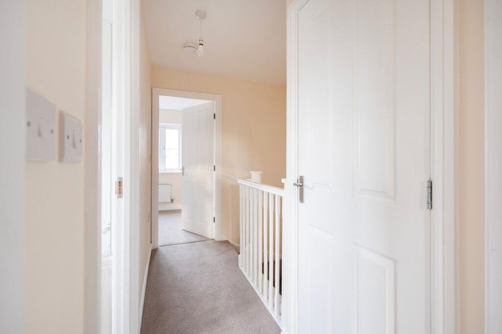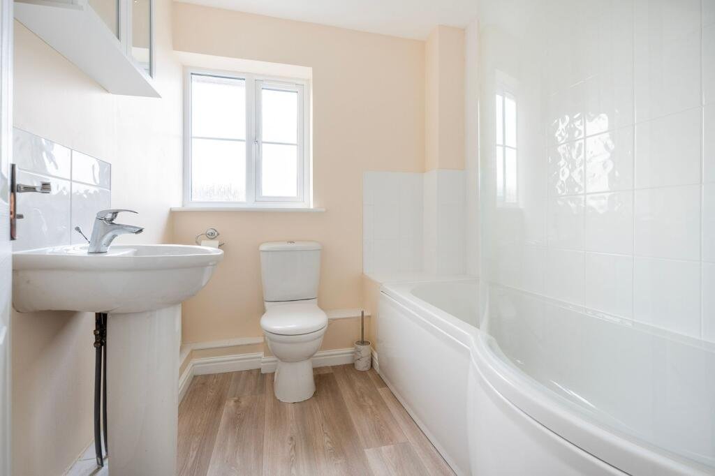 Upstairs, the landing leads to two double bedrooms, with the main bedroom including two fitted double wardrobes. The bathroom is arranged off the landing and features a P shaped bath with electric shower over, a shower screen, basin and WC.