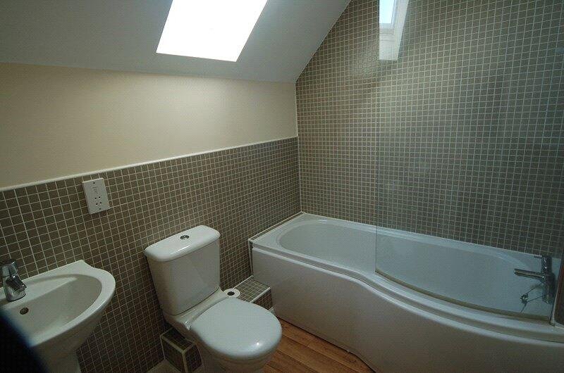 BATHROOM: Suite comprising of low level w/c, pedestal hand basin and p-shaped bath with shower over.