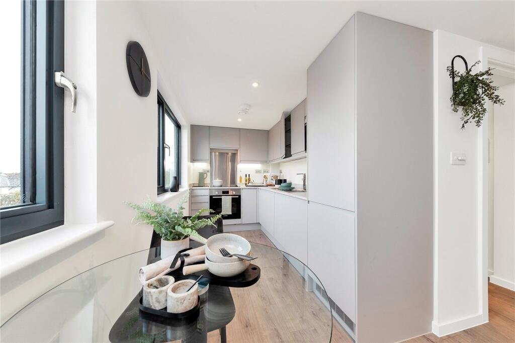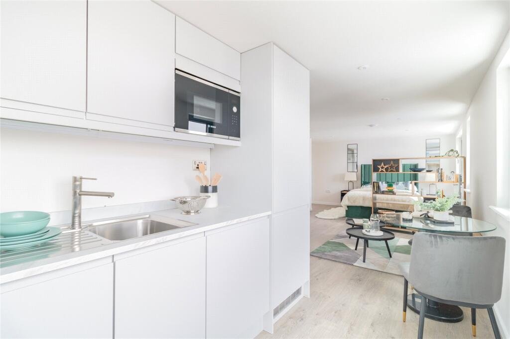 Contemporary designed kitchens to include electric single oven with hob, integrated cooker hood and stainless-steel splashback. Integrated dishwasher, fridge and freezer and microwave. Bathroom with large enclosed shower, ladder style chrome towel radiator, white handbasin and floor mounted WC. Parking allocated and secure ample bike storage.