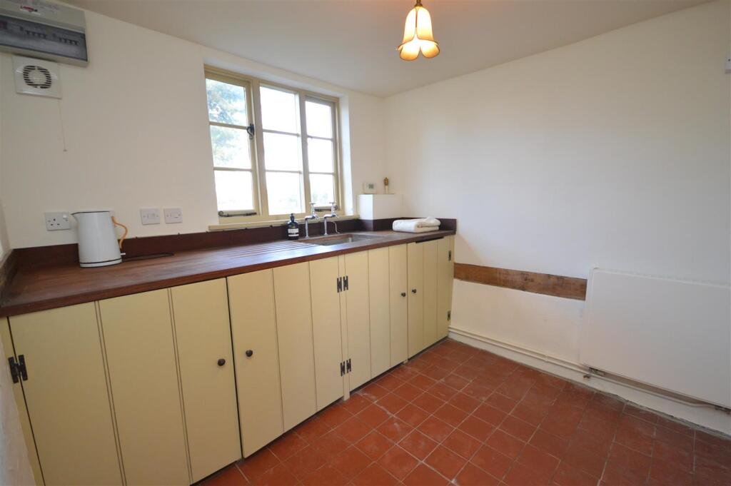 drawn into a cosy reception room complete with a wood-burner, ideal for relaxed evenings. This leads seamlessly into an impressive second reception room, flooded with natural light and boasting breathtaking views of the surrounding countryside. Whether you envision this as a luxurious living space or a more formal dining room, it offers endless versatility. Beyond this, a third reception room provides additional flexibility and flows into a practical utility room and a downstairs W/C with walk-in shower. An additional side entrance also provides convenient access. All three main reception rooms showcase distinctive brick floor tiles that beautifully enhance the home’s character and charm.