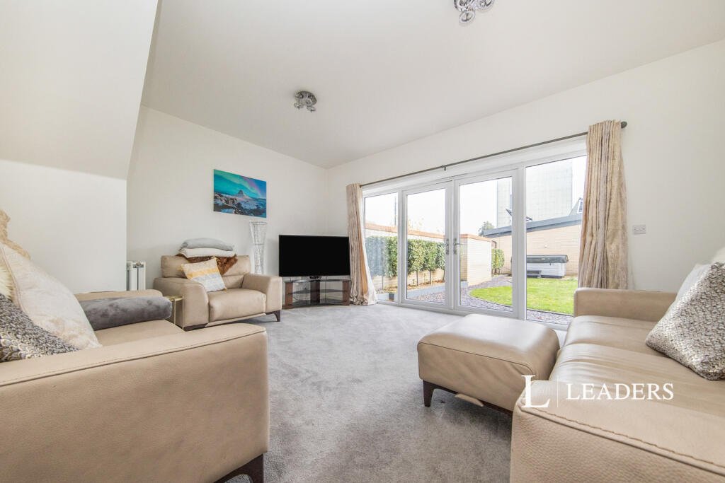 the luxury of an instant boiling water tap. Two sets of double patio doors open onto the beautifully landscaped garden. A separate living room offers a peaceful retreat, also with double doors to the garden. Completing the ground floor are a utility room and a downstairs cloakroom.