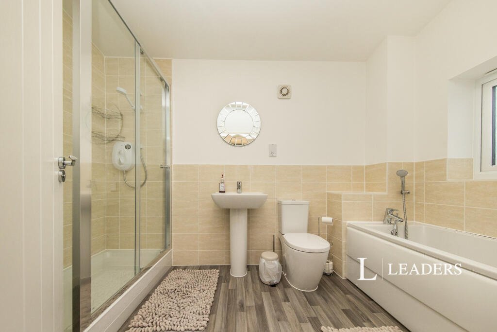The split-level staircase leads to the first floor, where you’ll find three double bedrooms and a generous single bedroom. Bedroom two includes a modern en-suite with a double shower, while the three rear-facing bedrooms enjoy views over Ravenswood Park. The spacious family bathroom offers both a double shower and full-size bath.