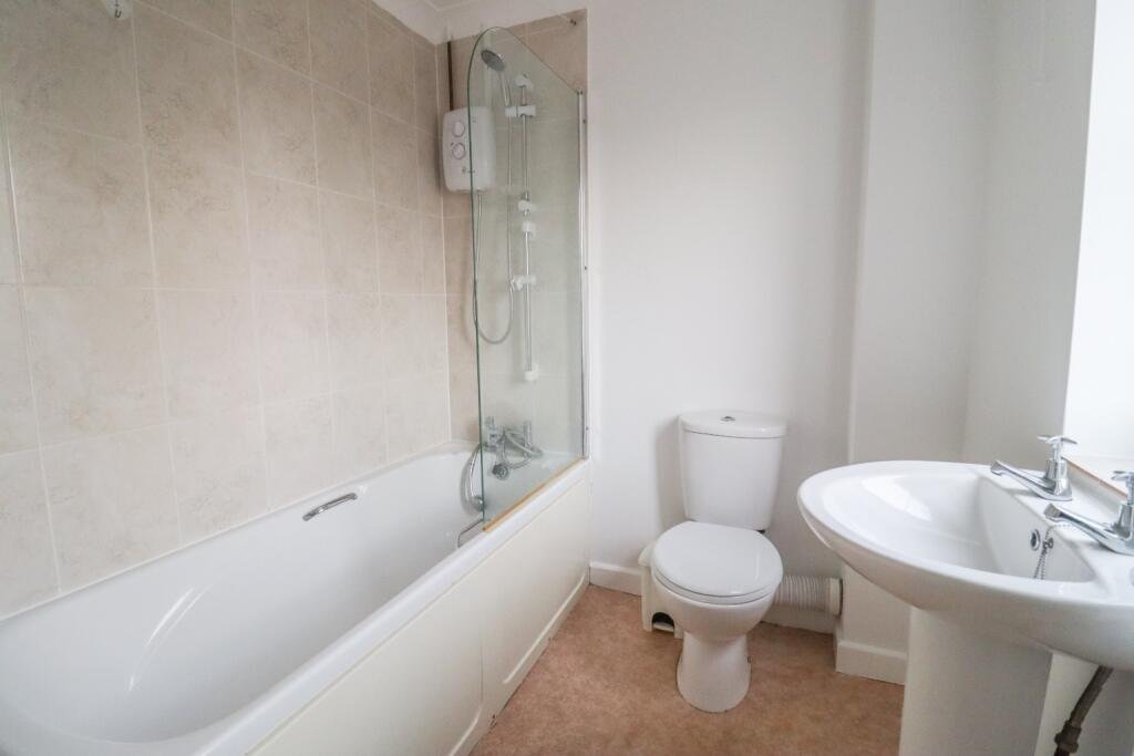 The accommodation briefly compromises of an open plan kitchen/living area, with cooker and washing machine provided as a goodwill gesture from the landlord. The downstairs also benefits from a WC and rear door accessing the courtyard garden. Upstairs the property boasts a double bedroom with storage cupboard, and a bathroom with three-piece suite compromising of bath with shower over.