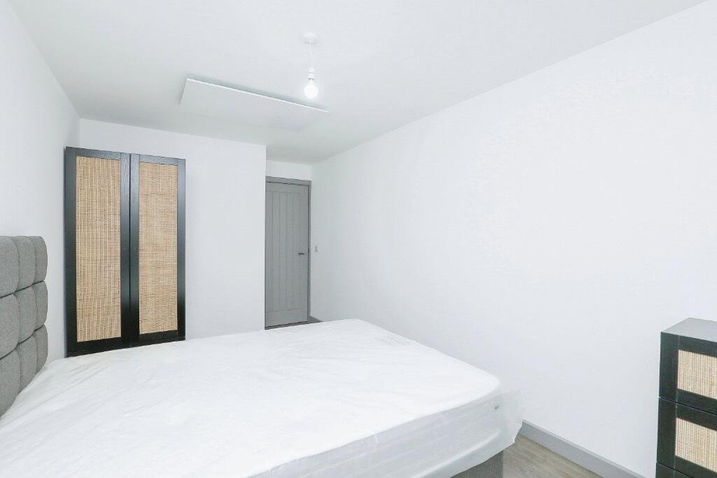 bedroom featuring brand-new, stylish furniture including a double bed, wardrobe, and bedside table—everything you need to feel at home.