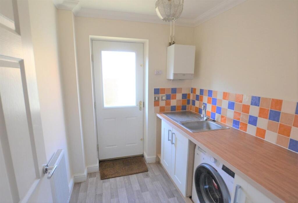 Utility Room – Worktop with inset sink. Base cupboards. Washing machine. Radiator, vinyl flooring and door to rear garden.