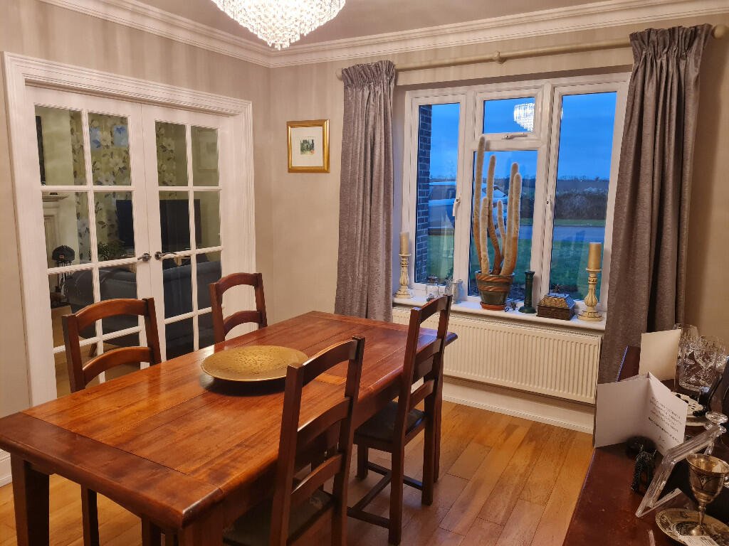 roman blind, crystal light fittings and double doors leading to the dining room.