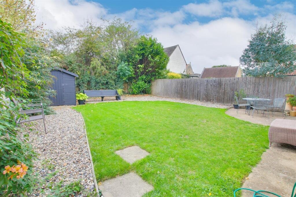To the rear, a timber fence and hedgerow enclosed garden, laid mainly to lawn with gravelled borders, paved seating area, outside tap and garden shed.